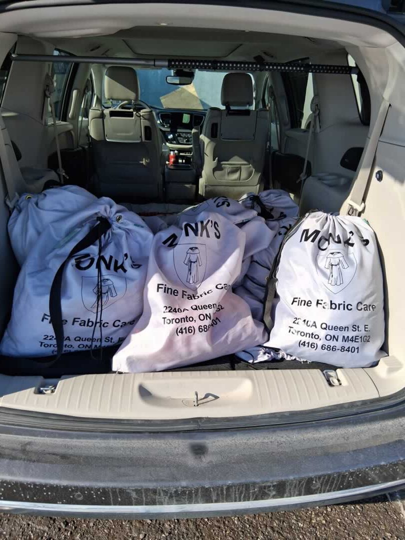 We can also deliver dry cleaning to your door. Please call us to schedule a pick up, or visit us at 2240A Queen Street East, or book online through www.monksfinefabriccare.ca